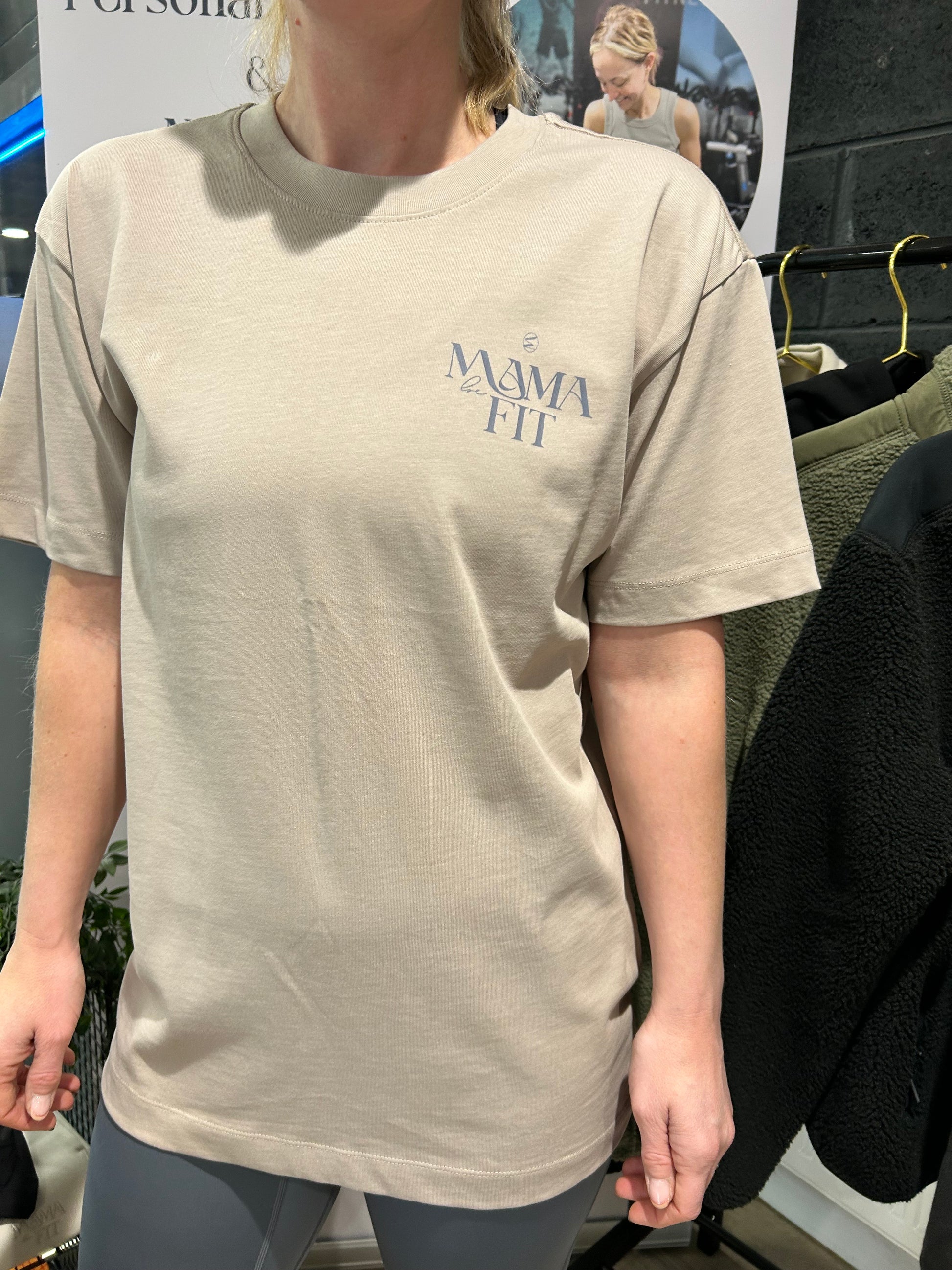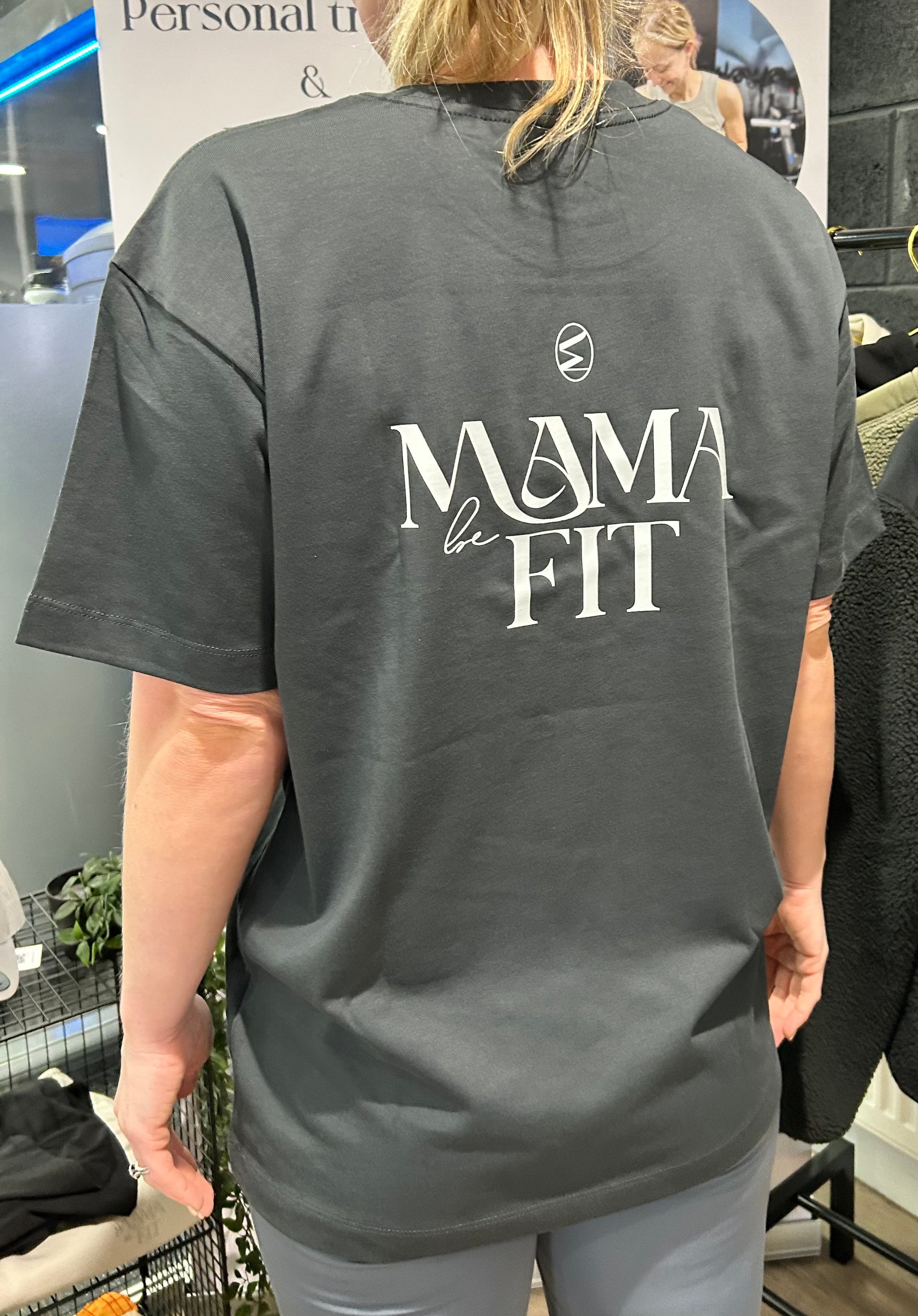 Our brand new oversized Mama Be Fit tee is designed for comfort, movement and a relaxed everyday fit. Made from heavyweight soft cotton, and finished with our signature logo printed on the front, and bold back graphic. Perfect for throwing on before class, wearing with leggings, or styling up for that effortless mum-on-the-go look.
